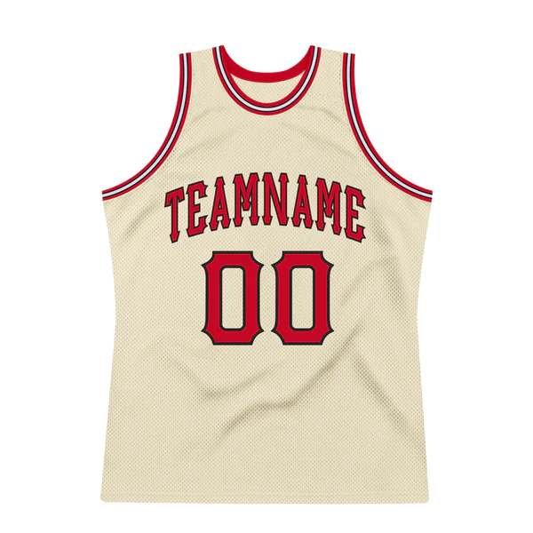 Custom Cream Red-Black Authentic Throwback Basketball Jersey