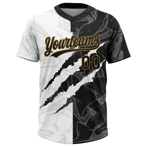 Custom Graffiti Pattern Black-Old Gold 3D Two-Button Unisex Softball Jersey