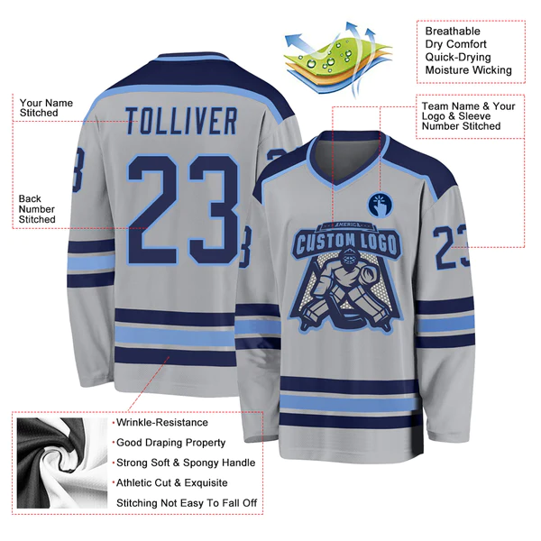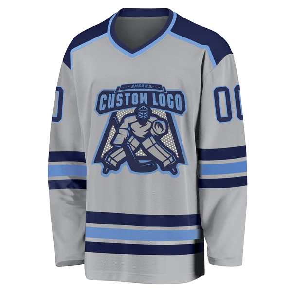 Custom Gray Navy-Light Blue Hockey Jersey