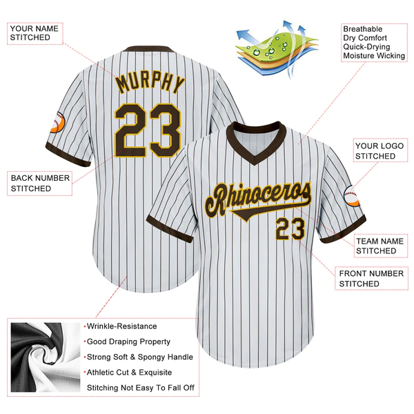 Custom White Brown Pinstripe Brown-Gold Authentic Throwback Rib-Knit Baseball Jersey Shirt