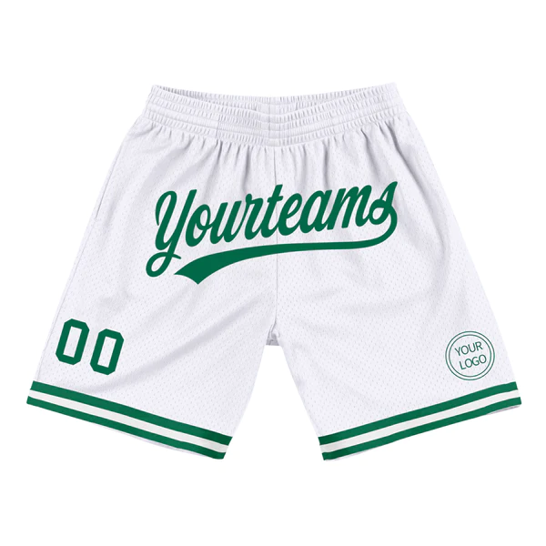 Custom White Kelly Green Authentic Throwback Basketball Shorts
